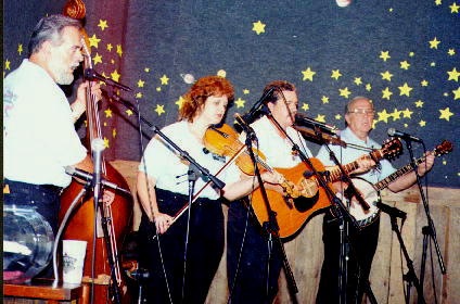 L to R: Joe Kelly - Bass, Michelle Justice - fiddle, Terry Justice - guitar, Don Winebarger - banjo.